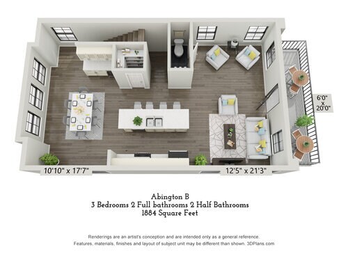 Modelo de apartamento: Abington BDesde $3,2503 Dormitorios, 3.5 Baños, 1884 sq ftDisponible AhoraLos planos de la planta son una interpretación artística. Todas las dimensiones son aproximadas. Los tamaños o el detalle del producto real y sus especificaciones pueden variar. No todas las características están disponibles en todos los hogares para rentar. Los precios y la disponibilidad están sujetos a cambios. El alquiler que se muestra es mensual. Se pueden aplicar ciertos cargos, por ejemplo, entrega de paquetes, recolección de basura, agua, servicios, etc. Depositos varian. Consulta a un representante para conocer detalles.
