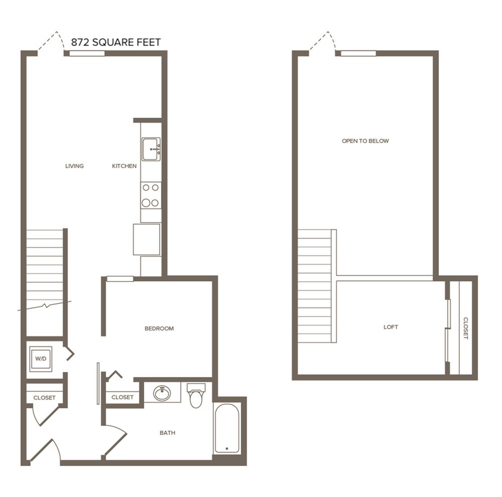 1 Dormitorio, 1 Baño, 774-808 pies²Galería del Modelo