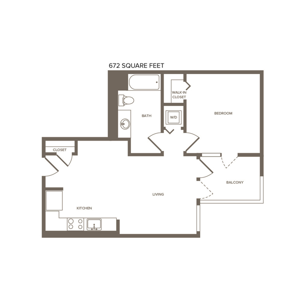 1 Dormitorio, 1 Baño, 664 pies²Disponible AhoraGalería del Modelo