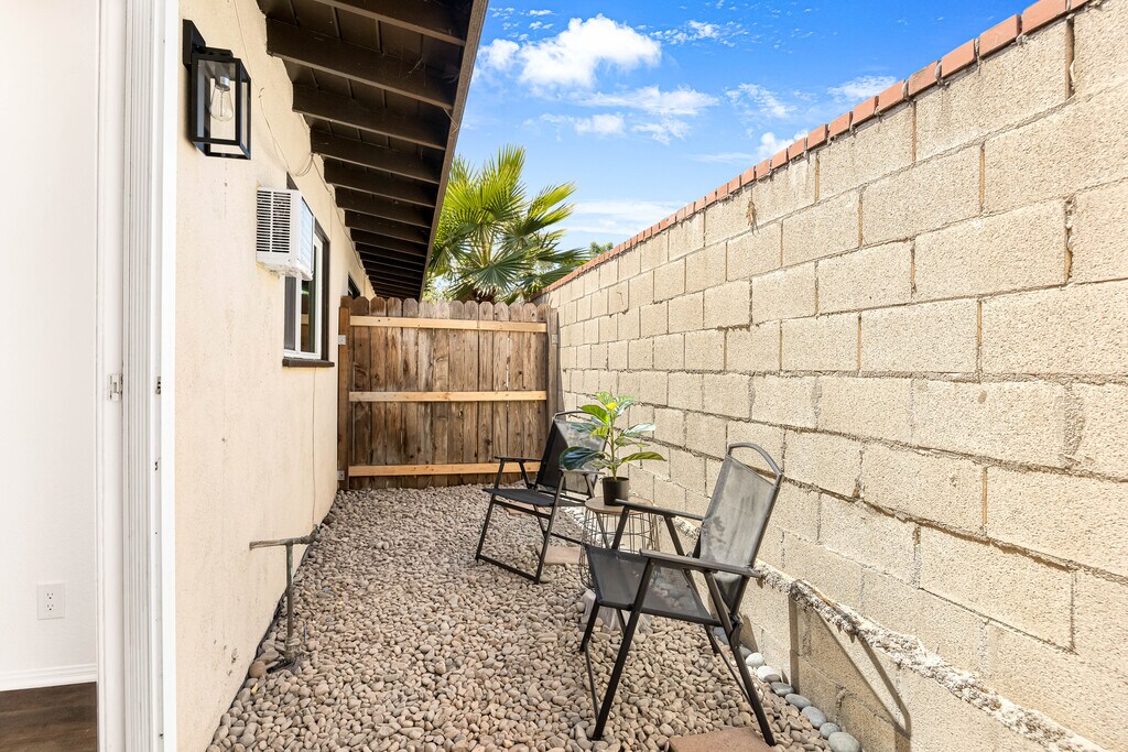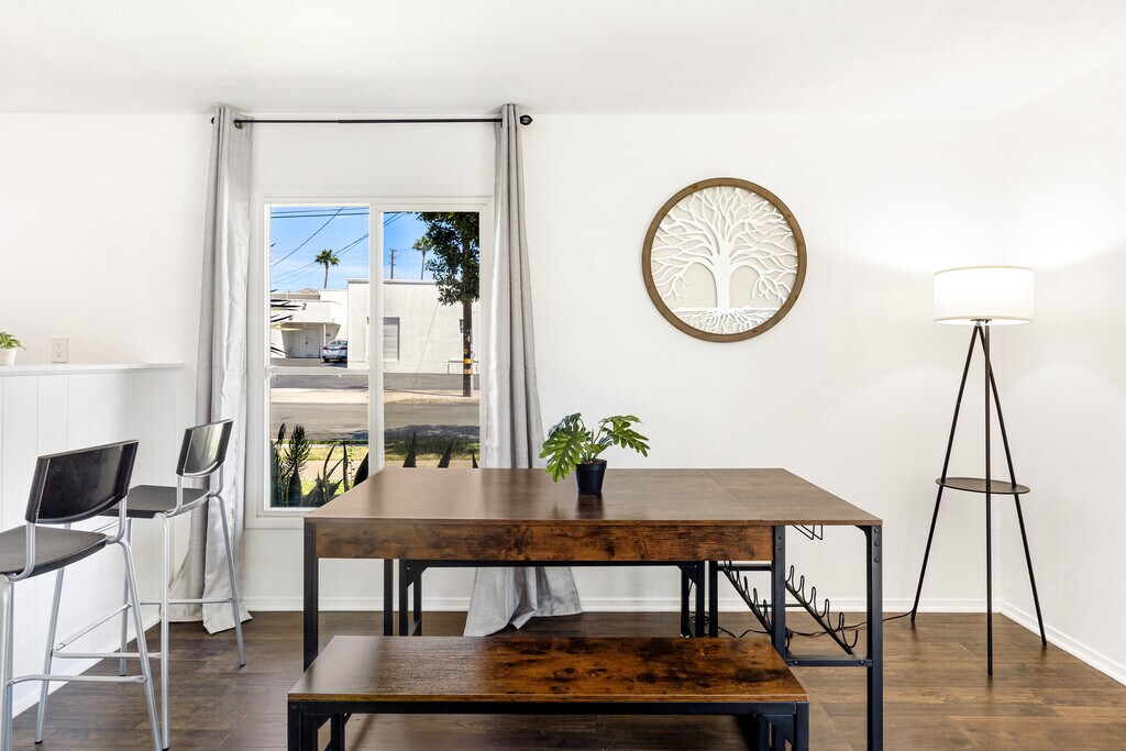 Centrally located 2bed/1bath furnished unit with front and back patio Modern decor with wood flooring Large bedrooms with floor to ceiling patio windows 1 garage parking and free street parking available In-unit laundry washer and dryer available Prime location and highly walkable to nearby shops, bus stops, and supermarkets. Close to Chapman University and CHOC and UCI hospital. Just minutes to major freeways 55, 57 and 22.