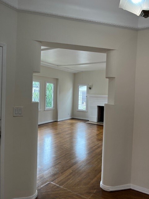 This charming 1930s era duplex is loaded with character! The available upper unit is large with 3 bedrooms, 2 baths plus a den. Gorgeous hardwood floors, remodeled kitchen, washer dryer in unit and a 2 car garage. Feels like a single family home with a small yard in the rear - and its walking distance to The Grove, Whole Foods and Farmers Market. Available August 1. Cats ok, no dogs.