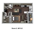Modelo de apartamento: Uptown Sensation$1,4251 Dormitorio, 1 Baño, 833 sq ftDisponible Ahora![]()