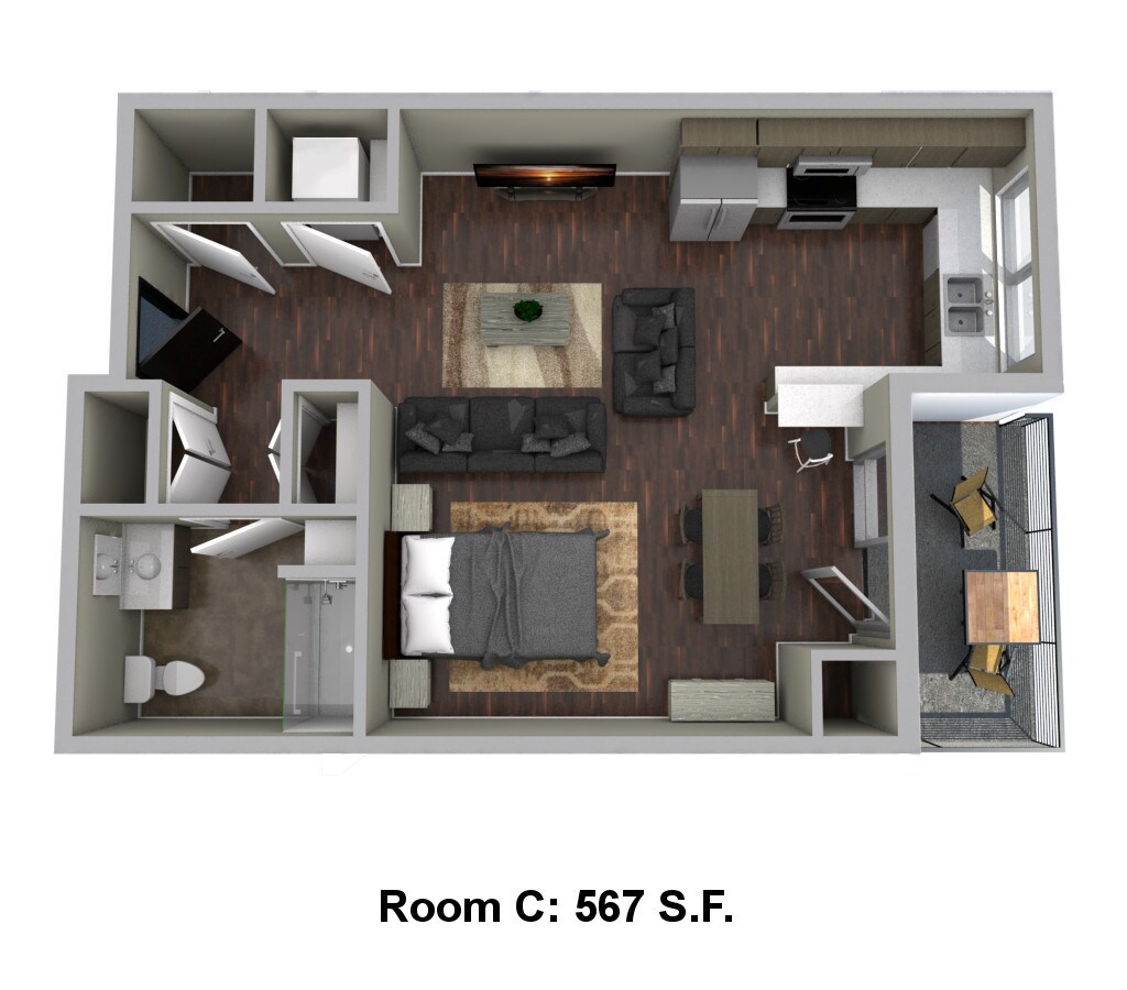 Estudio, 1 Baño, 567 pies²Disponible AhoraGalería del Modelo