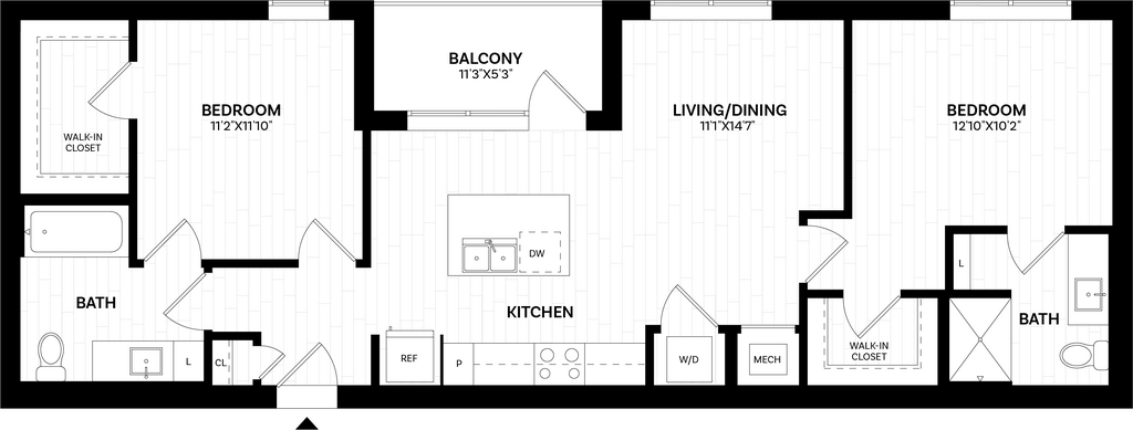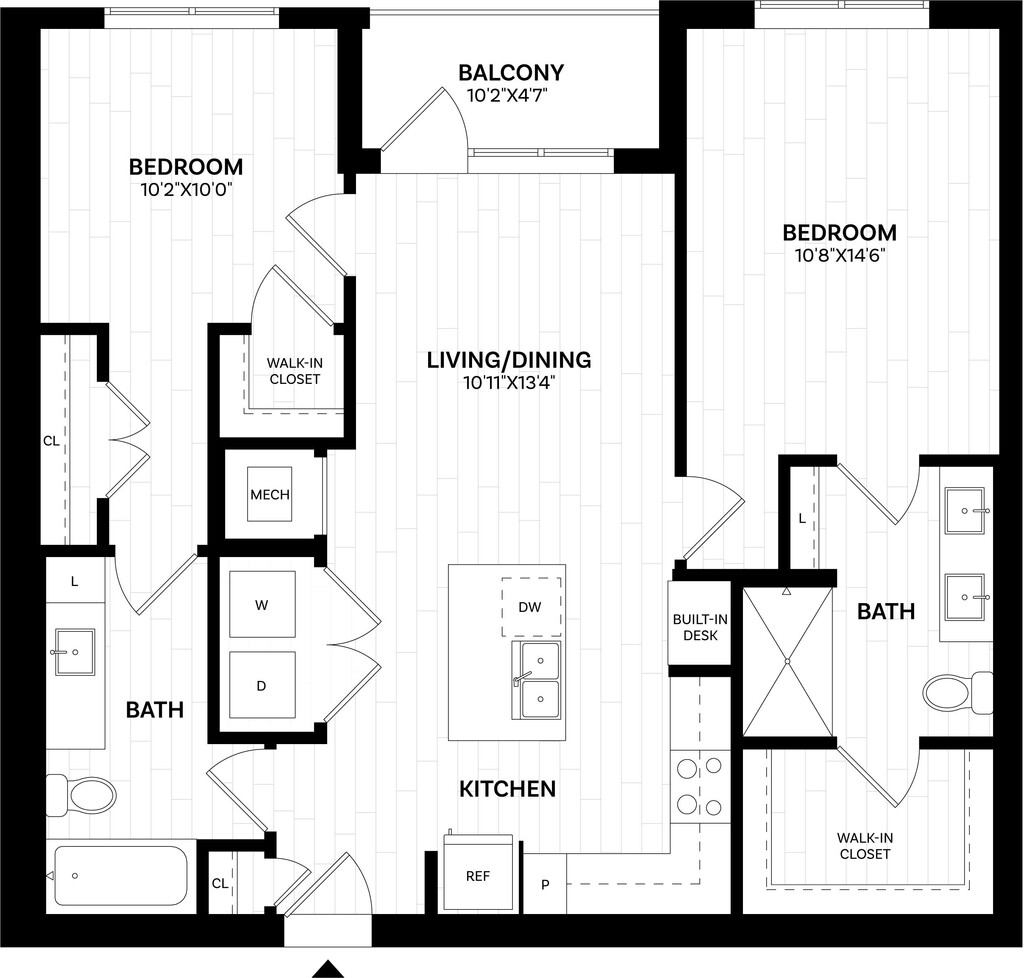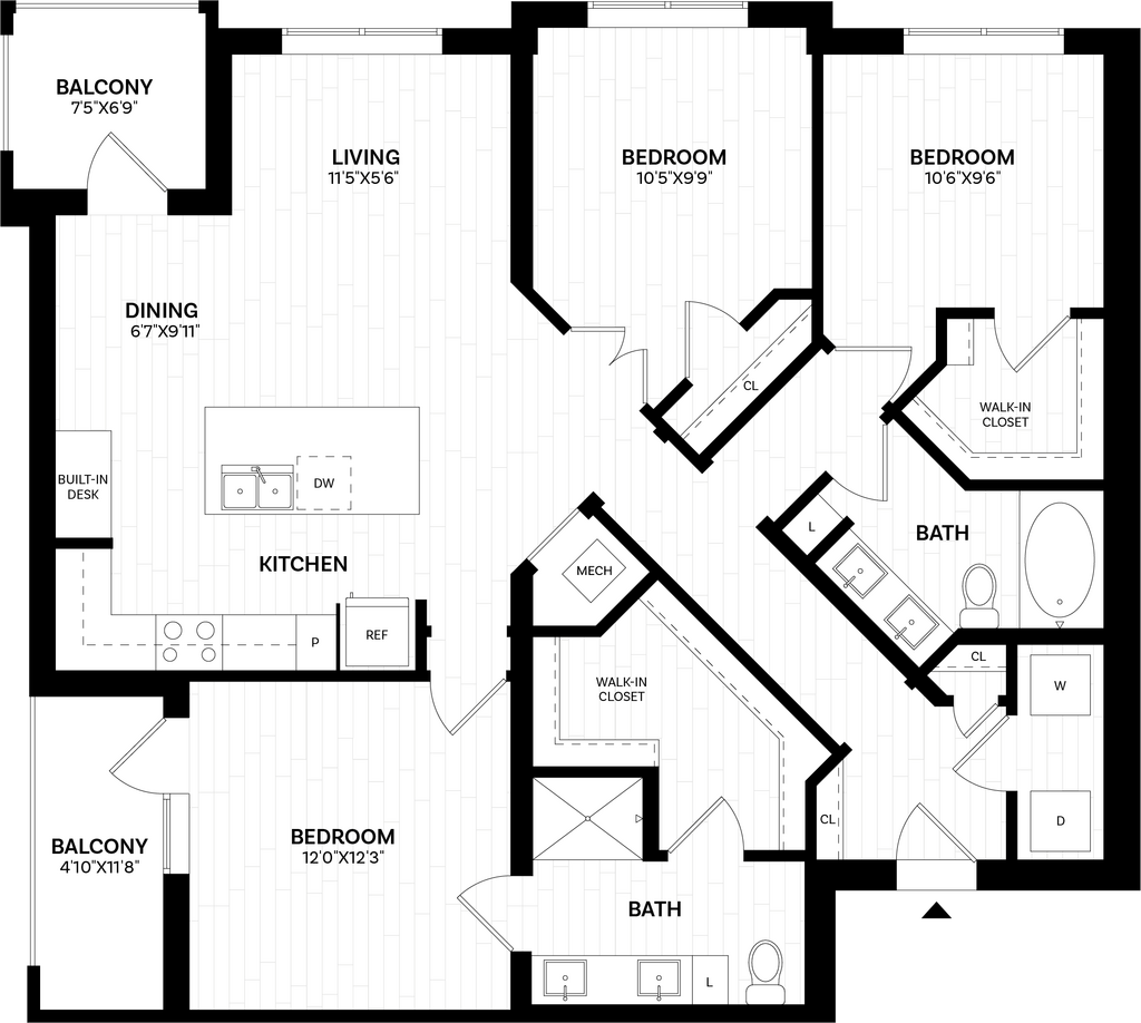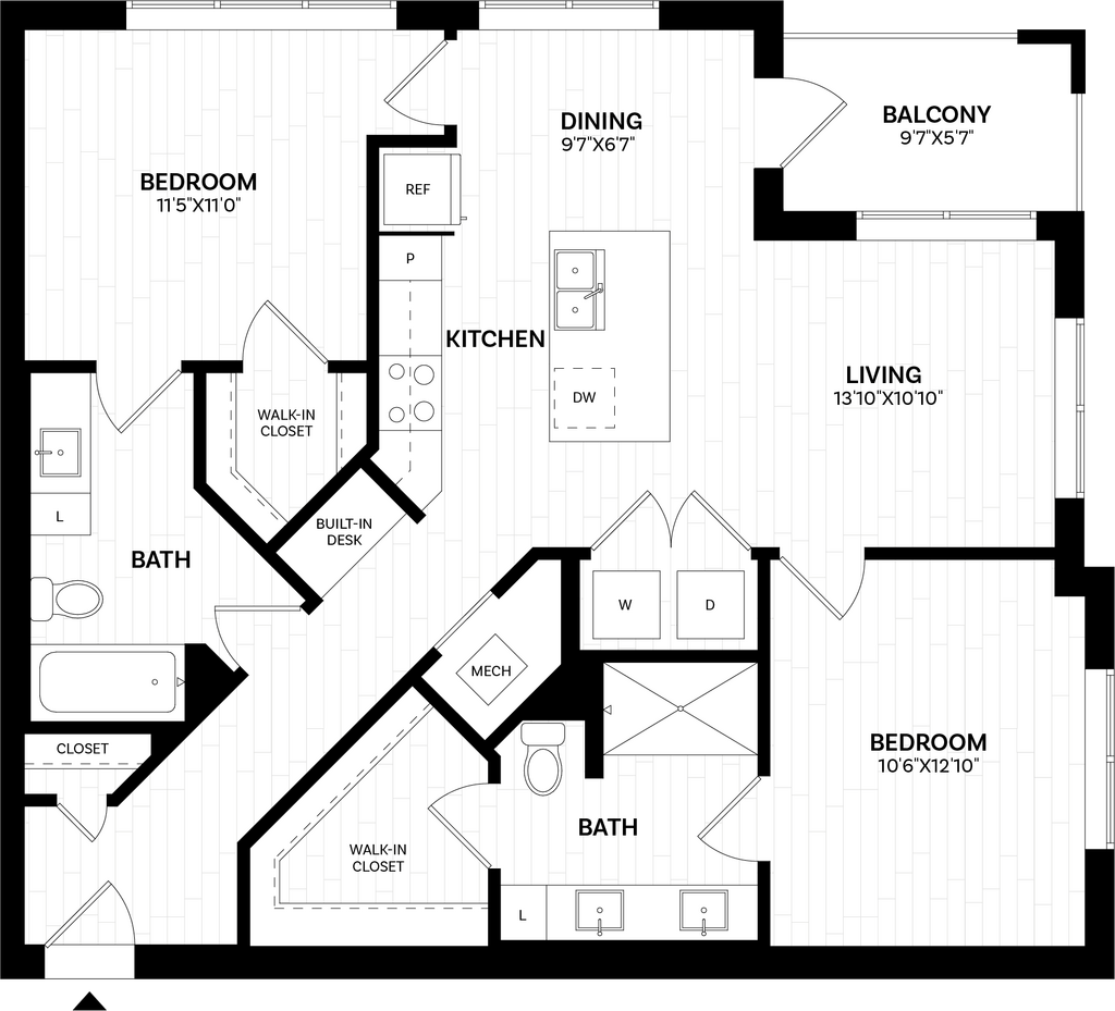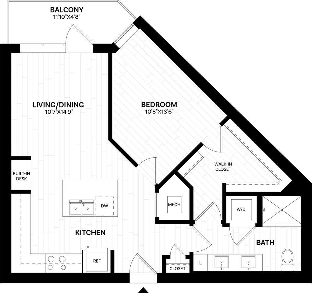 Modelo de apartamento: 1 Bed/1 Bath-A0.120 WDU$1,8271 Dormitorio, 1 Baño, 576 sq ftDisponible Ahora![]()