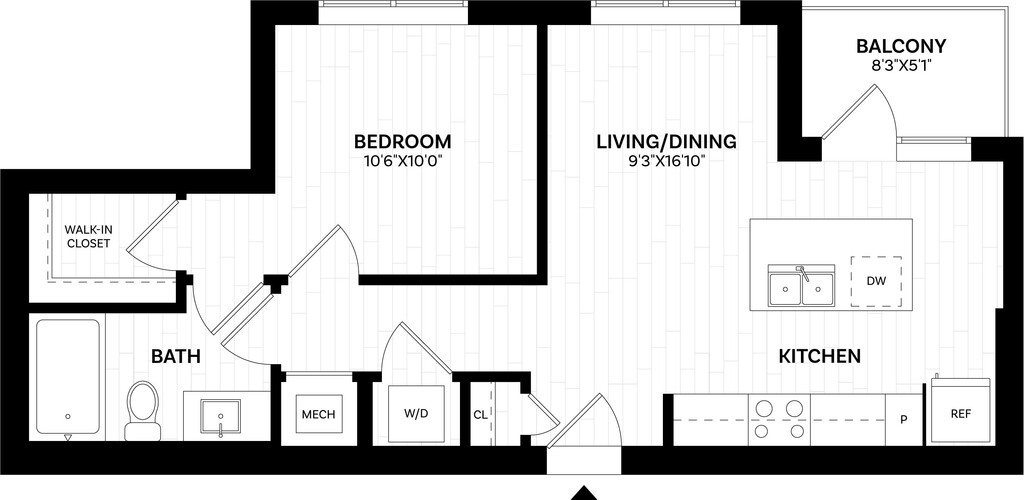1 Dormitorio, 1 Baño, 576 pies²Disponible AhoraGalería del Modelo