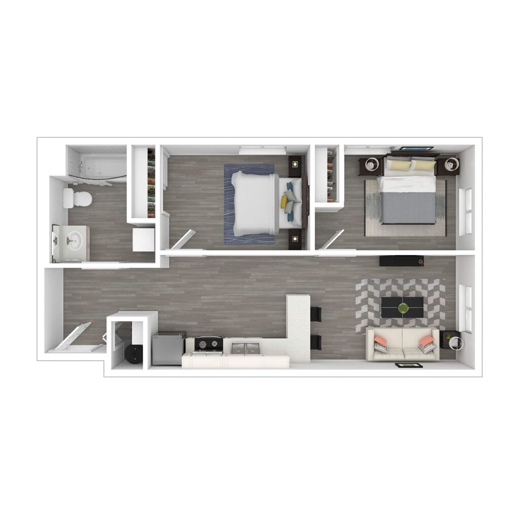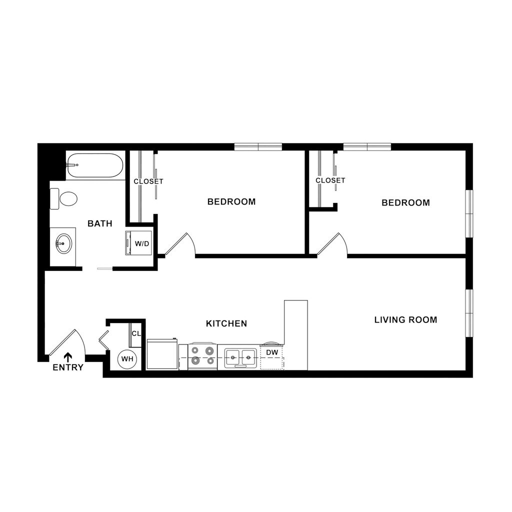 Modelo de apartamento: Two Bedroom/One Bath$1,7752 Dormitorios, 1 Baño, 641 sq ftDisponible May 21, 2026![]()