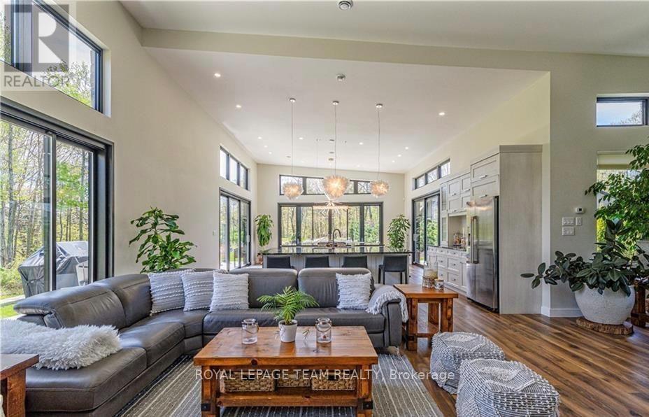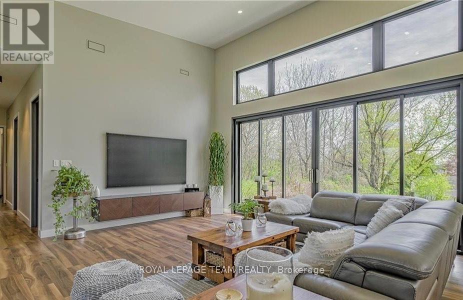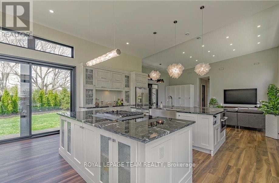 Experience refined living in this stunning custom-built executive home located in the heart of the 1000 Islands. This immaculate 2-bedroom,2-bath residence offers exceptional craftsmanship,elegant design,and a brilliant open-concept layout all on one level. The home is filled with natural light from expansive windows that showcase partial views of the St. Lawrence River. The chef's kitchen is an entertainer's dream,featuring two large islands,a gas range,and high-end finishes throughout. Vaulted ceilings and stylish details elevate every room,creating a bright and inviting atmosphere. Step outside to your private backyard retreat,complete with a hot tub and patio - perfect for enjoying your morning coffee or evening relaxation. The property also includes a large heated garage with oversized doors,offering ample space and convenience. Situated on a quiet cul-de-sac,just steps from the parkway path and marina,this home combines luxury and lifestyle. Fully Furnished,short term rental beginning Jan 1/2026 (id:52069) ID#: 2216751