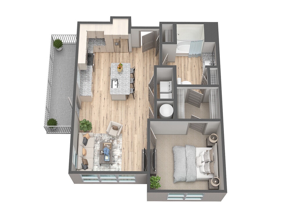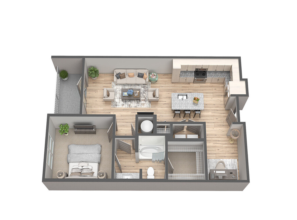 1 Dormitorio, 1 Baño, 810 pies²Disponible Dec 23Galería del Modelo