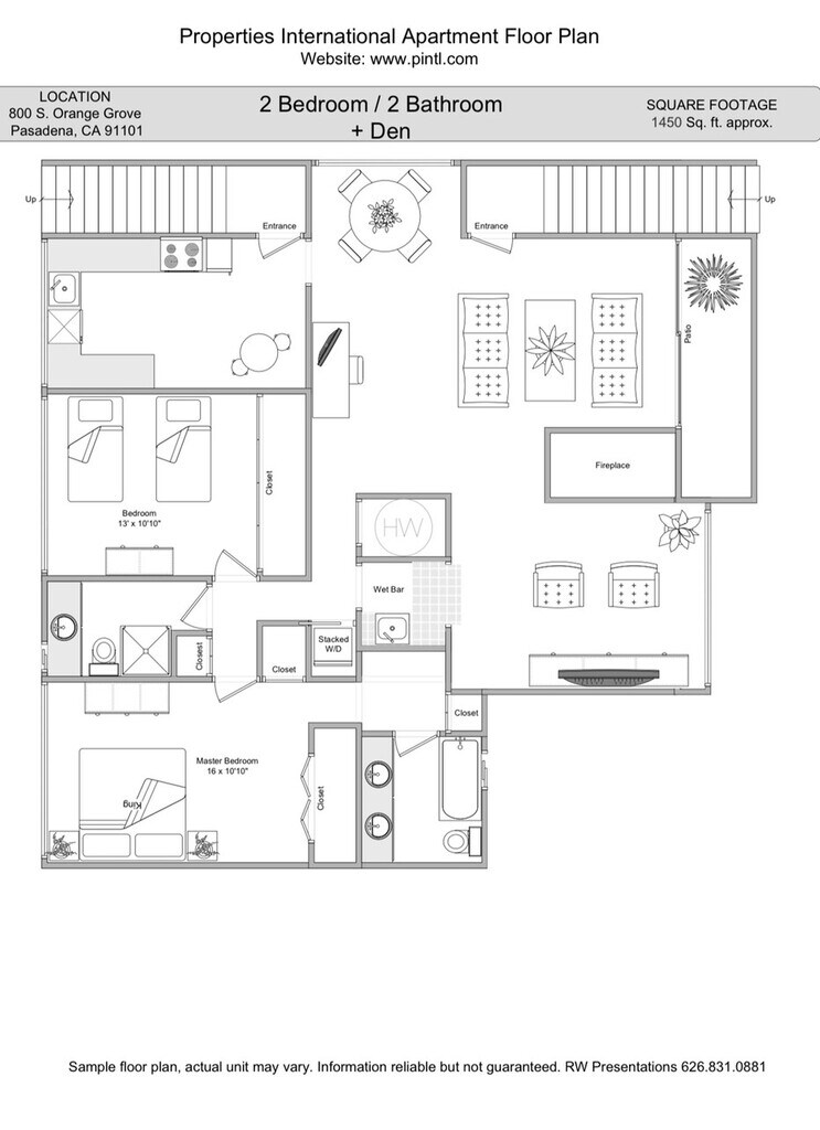 Our most prestigious location! 800 S. Orange Grove is located on one of the most well-known and upscale streets in Pasadena, directly on the Rose Parade Route. The grounds are pristine with beautifully manicured lawns, flowers, and trees. These units are more like condos, each having 2 bedrooms, two bathrooms, and a spacious den. There is also a wet bar, a large balcony, and a washer/dryer within each unit. You have every comfort you need and want in the beautiful 800 S. Orange Grove.