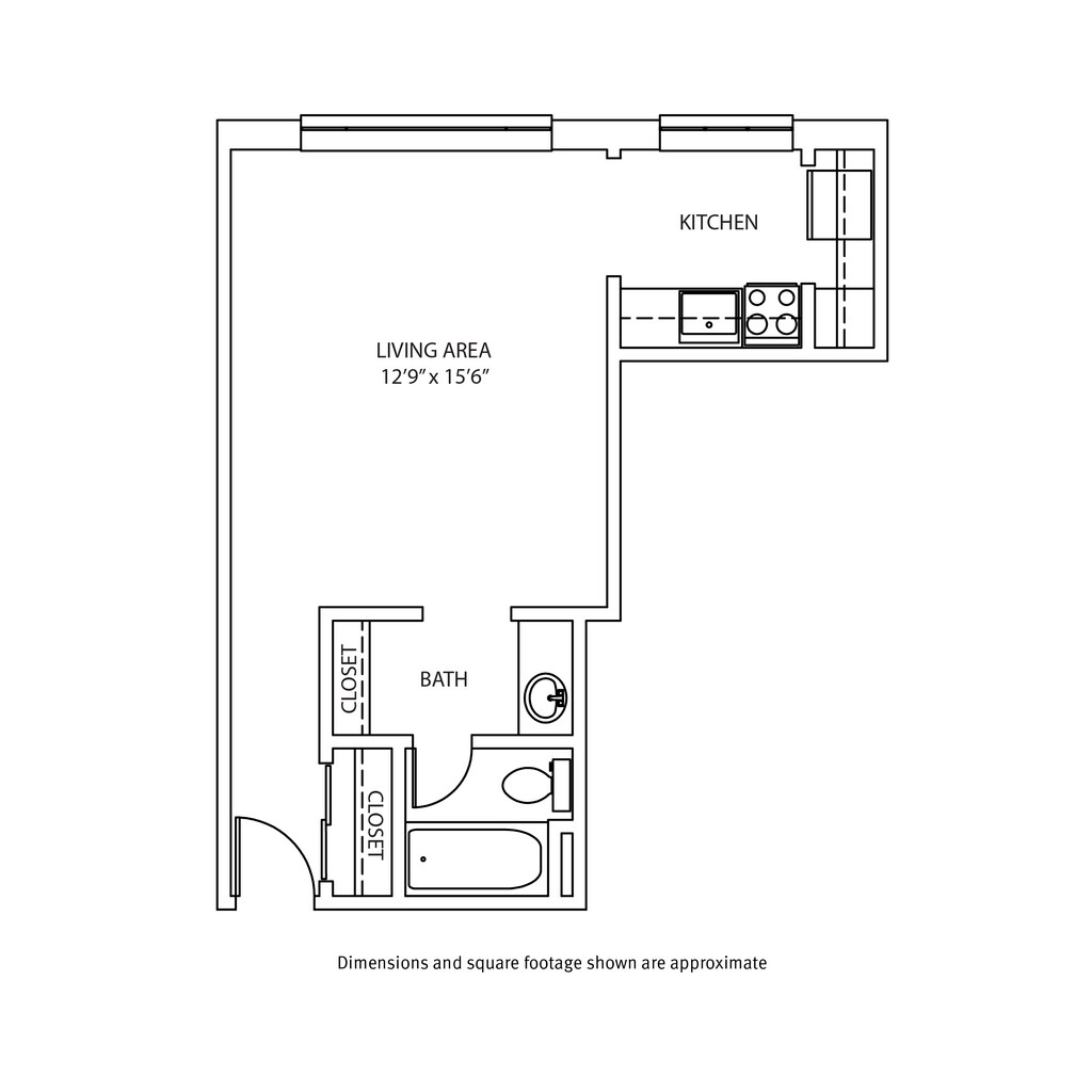 Estudio, 1 Baño, 420 pies²Disponible AhoraGalería del Modelo