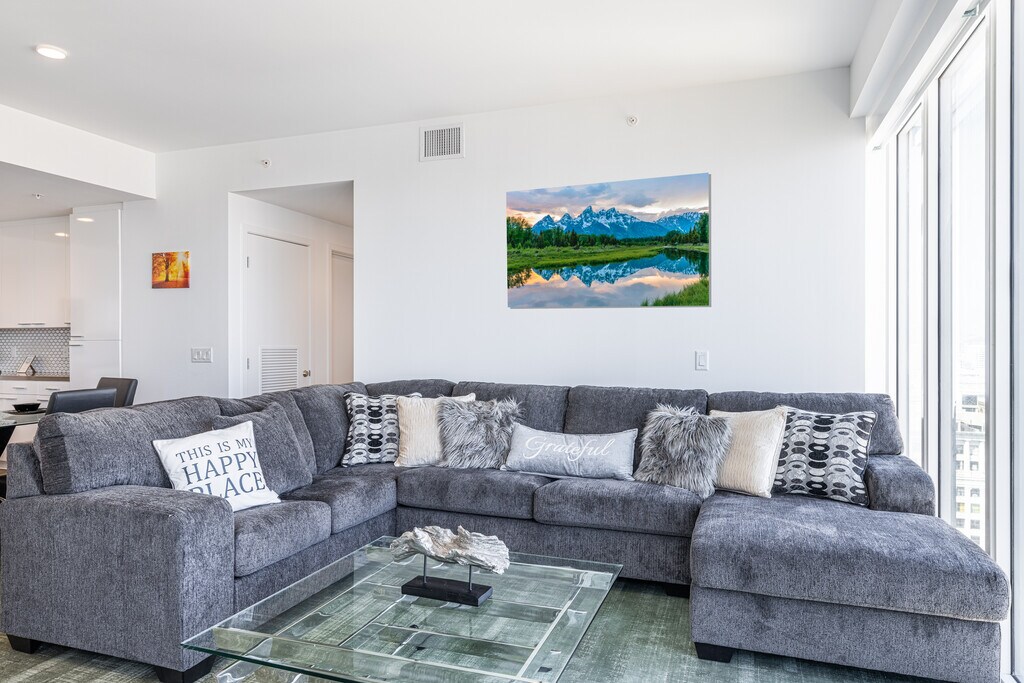 3 bed 2 full bath fully furnished Penthouse! Contemporary high rise apartment w/ amazing amenities- pool, hot tub, lounge, pool table, fire pit, bbq, gym, rooftop, parking on site. Inside- Contemporary furniture, fireplace + epic views on 26+ floor. 3 Smart TV's. Walking proximity to restaurants, bars, shopping, groceries. Weve had many LA convention center attendees as guests. We have many different penthouse units in this building 3 bed 2 bath and 3 bed 3 bath. Rent include utilities with limitations. No parties, smoking, loud noise past 10pm, strict 24 hour on site security to ensure. Violation=immediate eviction + no refunds. Please text only to arrange viewings & if you have questions. Weekly or monthly lease available. Utilities are included in base rent, however, tenant may get charged extra utilities if usage goes above maximum limit.