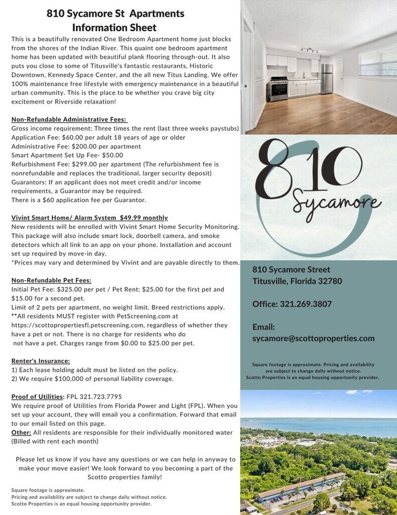 810 Sycamore Street se encuentra en el código postal 32780 de Titusville, FL. Esta comunidad está gestionada profesionalmente por Scotto Properties