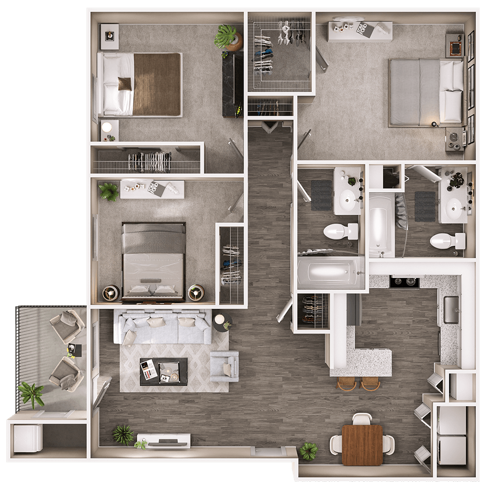 2 Dormitorios, 2 Baños, 871 pies²Disponible AhoraGalería del Modelo