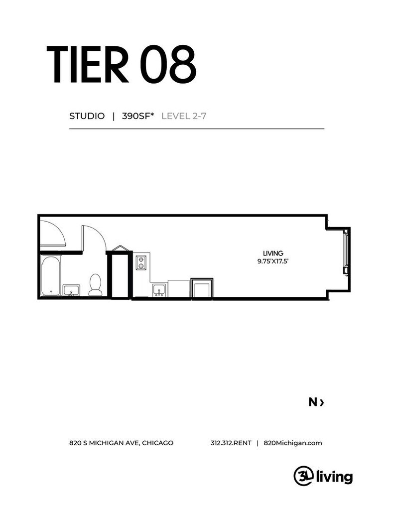 820 Michigan by 3L Living ofrece apartamentos de Estudio y 420 pies cuadrados. Aquí está el precio actual y la disponibilidad: