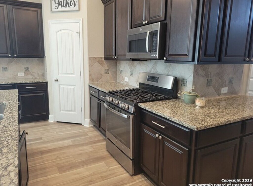 Perfect for families to gather! The home welcomes you with a spacious entryway and a bright, open kitchen that flows seamlessly into the family room. The primary suite features double closets, while upstairs you'll find a large game room, a private bedroom, and a full bath-ideal for guests or older children. The covered patio offers the generous outdoor space you've been waiting for, and the backyard backs up to a peaceful greenbelt, ensuring no neighbors behind you. This is truly a fantastic home for entertaining or everyday living. Enjoy access to the community pool and playground for even more fun! Available for Move in October 1st