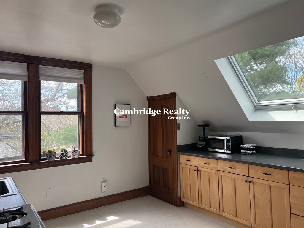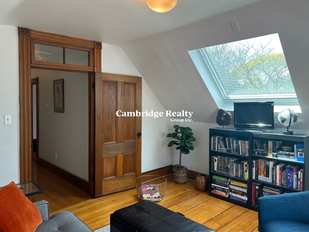 Beautifully maintained, sunlit, tree-top apartment just blocks from Davis and Porter squares, the T, Mass. Ave., busses, cafes, stores, laundromats, and Minuteman bike path. Apartment is on third (top) floor of Victorian home. Large eat-in kitchen; living room; 1 bedroom; study; bathroom. Hardwood floors and skylights throughout. Generous closet and storage space. Dependable on-street parking in front of house on beautiful, tree-lined Cambridge street, one block from Mass. Ave. Available for 8/15 or 9/1. Single Occupancy only. Sorry, no pets, no smoking. Email for a video and showing today!