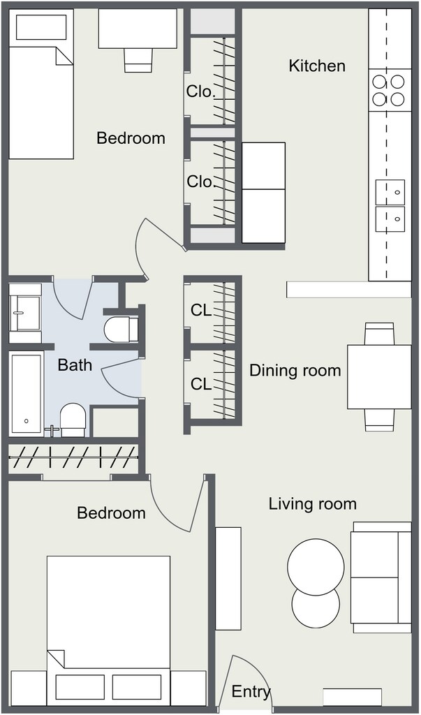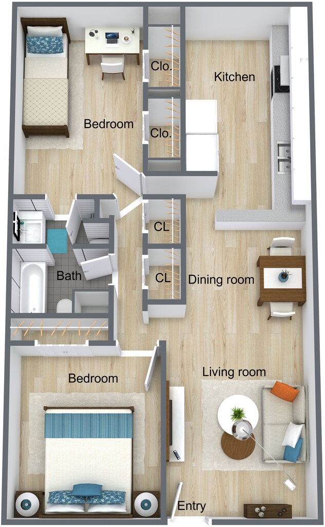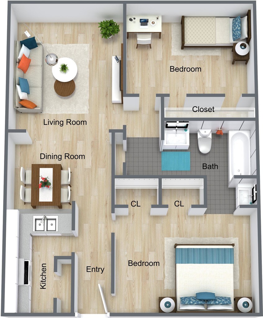 2 Dormitorios, 1 Baño, 955 pies²Galería del Modelo