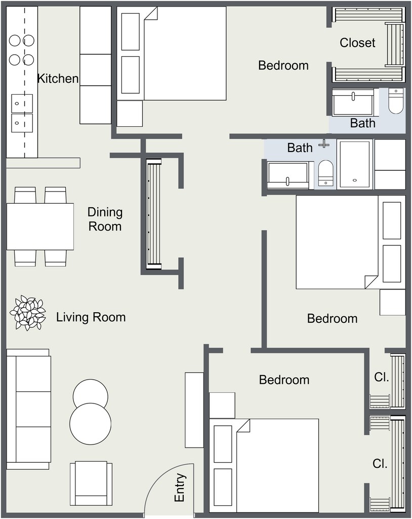 3 Dormitorios, 2 Baños, 1200 pies²Galería del Modelo
