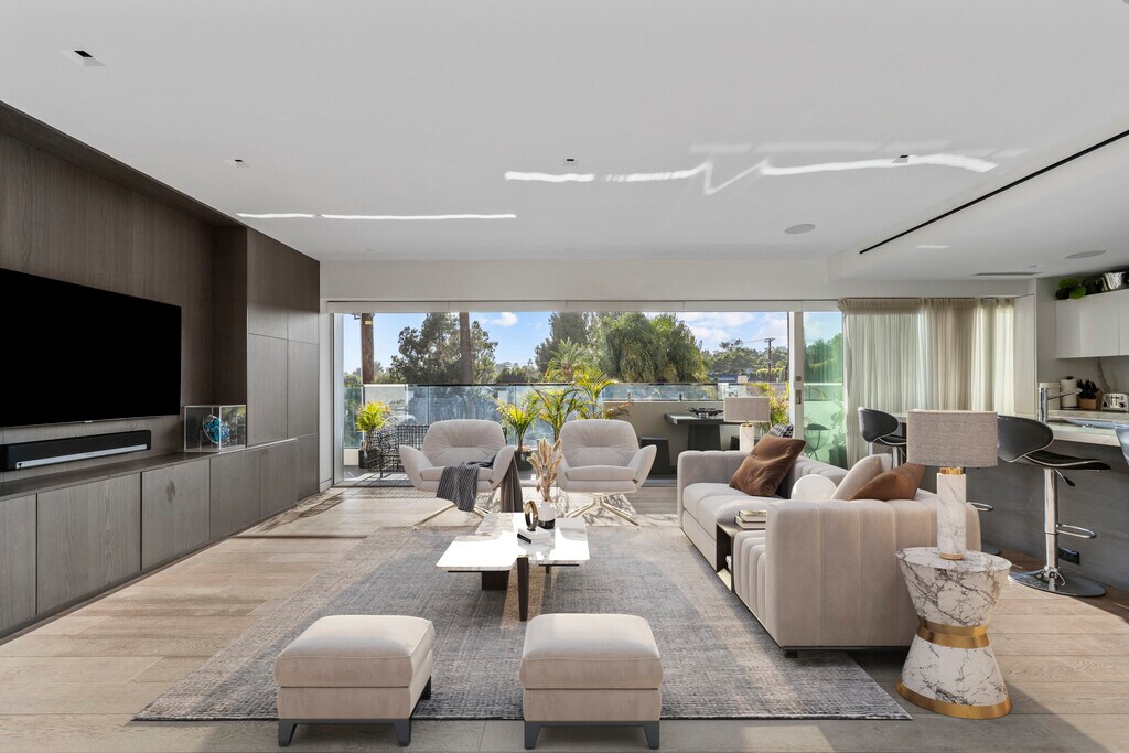 Designer Condo at 838 Doheny. Setting the bar for luxury living in LA. A sophisticated open space, retractable Fleetwood glass doors showcase a wrap around patio for ultimate indoor/outdoor living. An entry leads to open-concept living room, formal dining and chef's kitchen. Custom European cabinets with waterfall countertop, Subzero, Miele, Bosch appliances, creating a perfect layout for entertaining. The living area with surround sound Sonos system, motorized solar shades, Lutton lighting controls, Nest and air filtration system. The two-bed unit features a primary with ensuite bath a dual vanity, soaking tub, glassed shower, heated floors, walk-in closet and extra storage. A guest room and 2nd bath complete. Wide-plank Oak floors throughout, new electrical and plumbing systems, private laundry with pantry area. Building amenities: a roof-top pool with sundecks and dining areas, fire-pits, gym and 360 degree views from city to ocean. A 2nd pool, full time concierge and valet. Cable, internet, HBO, and water included.
