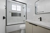 Featuring this tastefully remodeled 1,925 SF home in Downey! This home offers the perfect blend of modern updates and timeless charm. Located on a quiet street, this spacious 4-bedroom, 2-bathroom home has been completely renovated inside and out. Step inside to a bright, open floor plan with brand-new everything! The stunning kitchen features sleek new cabinetry, a large island ideal for entertaining, and new quartz countertops. The kitchen comes equipped with all new stainless steel appliances, including a refrigerator, range/stove, microwave, and dishwasher. Enjoy year-round comfort with a brand-new central air and heating system. The home features a laundry room, spacious bedrooms, and two updated bathrooms with modern finishes. This property shares a lot with a rear ADU, but don't worry—privacy is ensured with a fence that separates the front house from the back unit. With fresh renovations throughout and located in a peaceful neighborhood, this is a must-see rental opportunity!