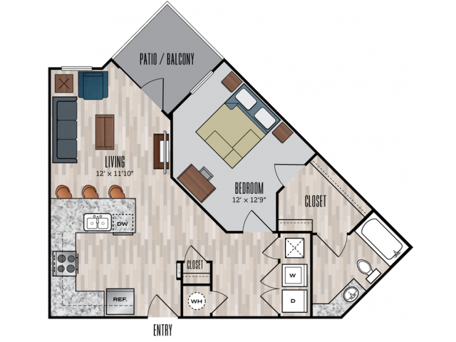Modelo de apartamento: A1$1,4251 Dormitorio, 1 Baño, 547 sq ftDisponible August 15, 2026![]()