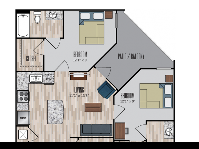 Modelo de apartamento: B1$7862 Dormitorios, 2 Baños, 851 sq ftDisponible August 15, 2026![]()