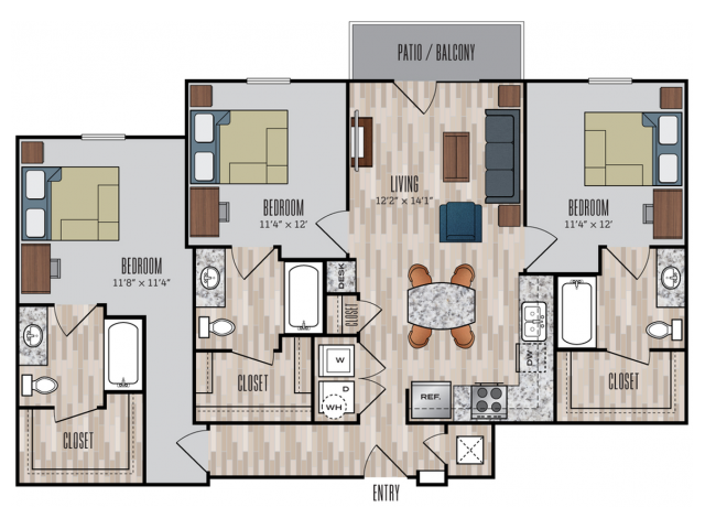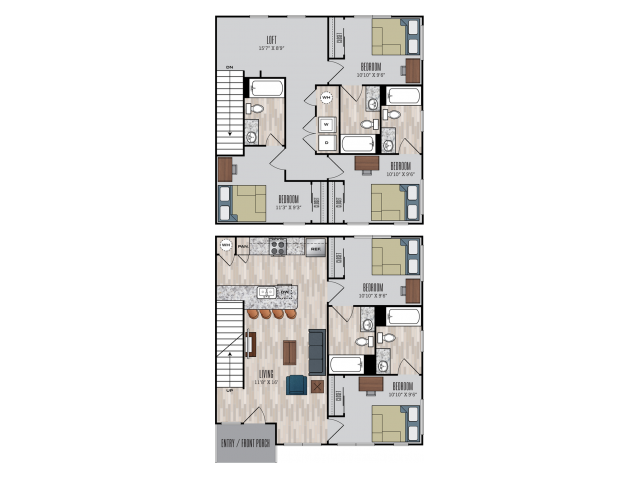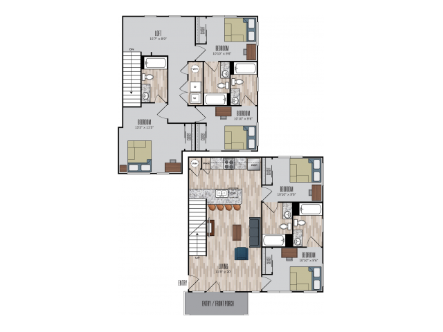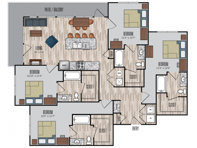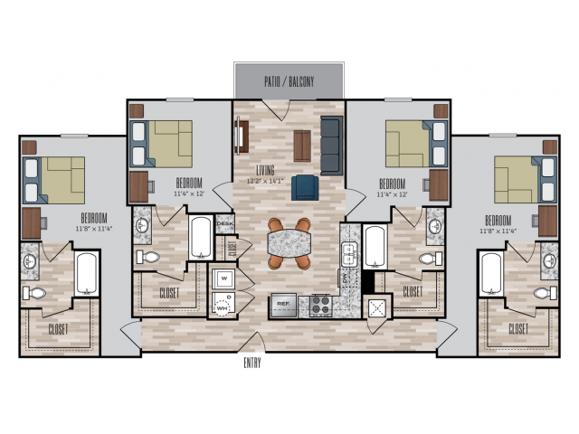 C1 - Plano 1 Unidad de apartamento: PrivateModelo de apartamento: C1$7753 Dormitorios, 3 Baños, 1192 sq ftDisponible August 15, 20264 Dormitorios