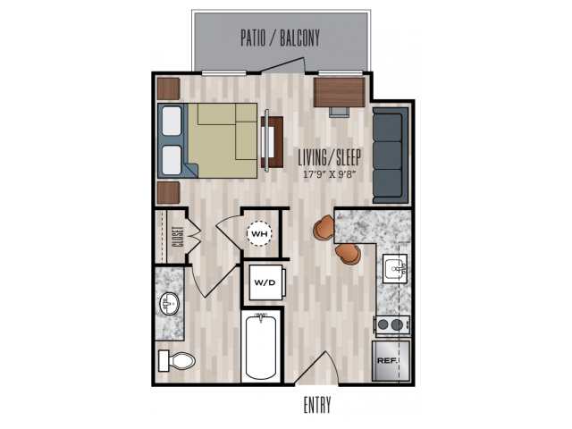 Modelo de apartamento: S1$1,268Estudio, 1 Baño, 360 sq ftDisponible August 15, 2026![]()