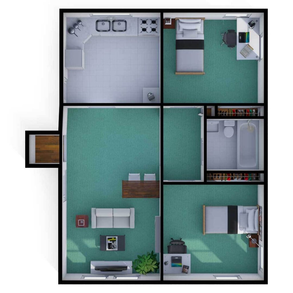 2 Dormitorios, 1 BañoGalería del Modelo