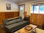 Esta hermosa cabina tiene 65 metros cuadrados/700 pies cuadrados, 2 br, 1 baño con un garaje para automóviles más una entrada para un segundo automóvil y espacio de almacenamiento cerrado para equipos o talleres. Tiene un patio delantero y trasero abiertos. También contamos con una bañera de hidromasaje compartida entre nuestras dos casas para su uso. La casa está amueblada y estamos buscando a alguien que cuide bien nuestra gema. Cada habitación tiene una cama Queen y la sala de estar tiene un sofá cama que se convierte en dos camas gemelas o una cama King. Así que puedes dormir hasta 6 aquí si es necesario. Hay una lavadora y secadora, chimenea a gas y pisos radiantes. Los servicios públicos no están incluidos. Sin duda, NO SE PERMITE FUMAR. Se admiten mascotas según cada caso. Junto al centro de transporte Y en un tranquilo vecindario boscoso. A 10 minutos de California Lodge y a 15 minutos de la góndola.