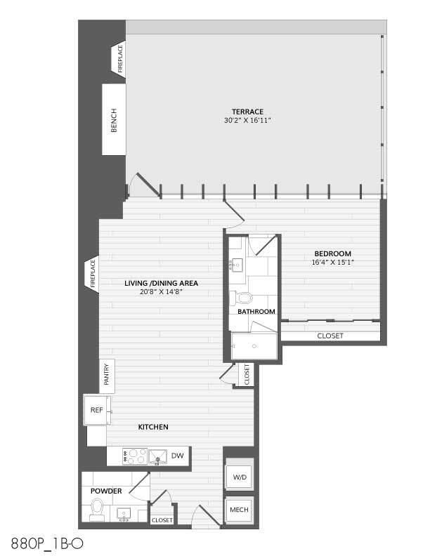 Modelo de apartamento: Studio-S-A ANSI A_880 PEstudio, 1 Baño, 423 sq ftNo Disponible![]()