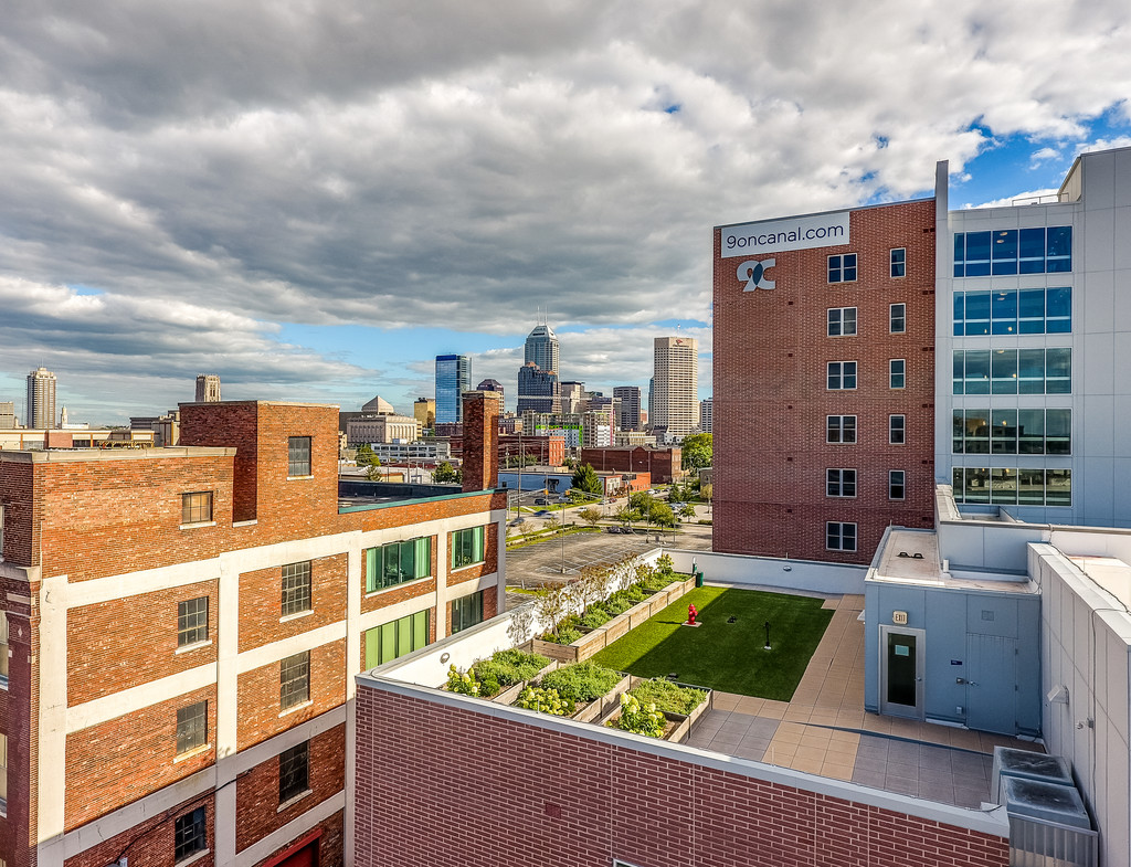 La vida en el canal. Si buscas el lugar donde el trabajo y la diversión se unen, no busques más allá de 9 on Canal. Aquí, en 9 on Canal, adoptamos el estilo de vida para vivir, trabajar y relajarte. Nuestros amplios apartamentos tienen cocinas y baños de lujo, armarios de gran tamaño con estantes empotrados y vistas impresionantes con balcones privados con vista al canal y al centro de Indianápolis. Nuestras comodidades de primer nivel incluyen una piscina de borde infinito en la azotea, gimnasio, y también admitimos mascotas.