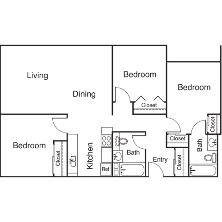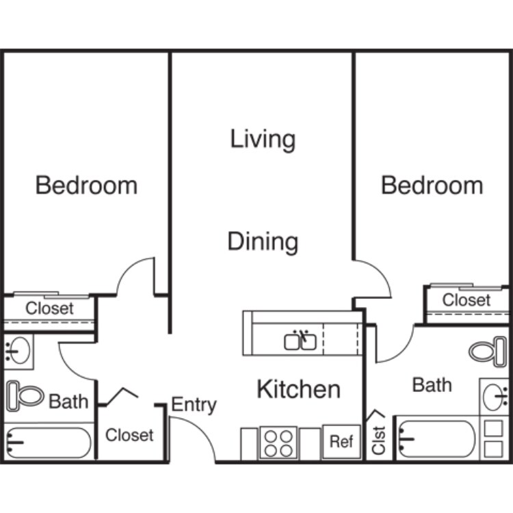 Modelo de apartamento: 2 Bed 2 BathLlame para Precios2 Dormitorios, 2 Baños, 822-872 sq ftNo Disponible![]()