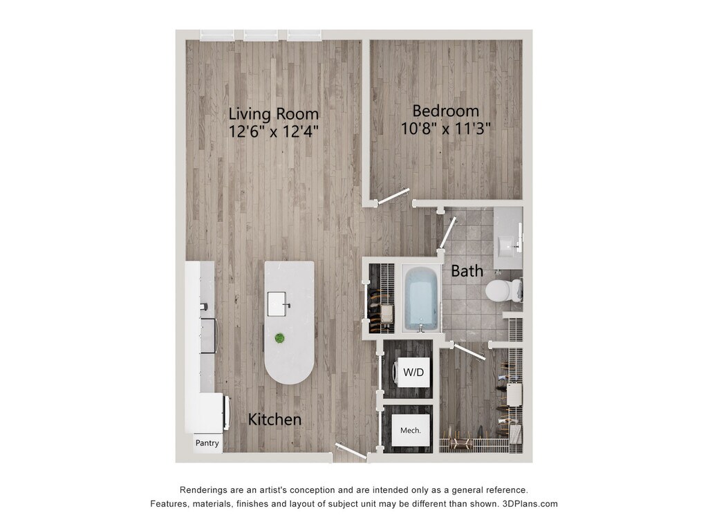 Estudio, 1 Baño, 585 pies²Disponible AhoraGalería del Modelo