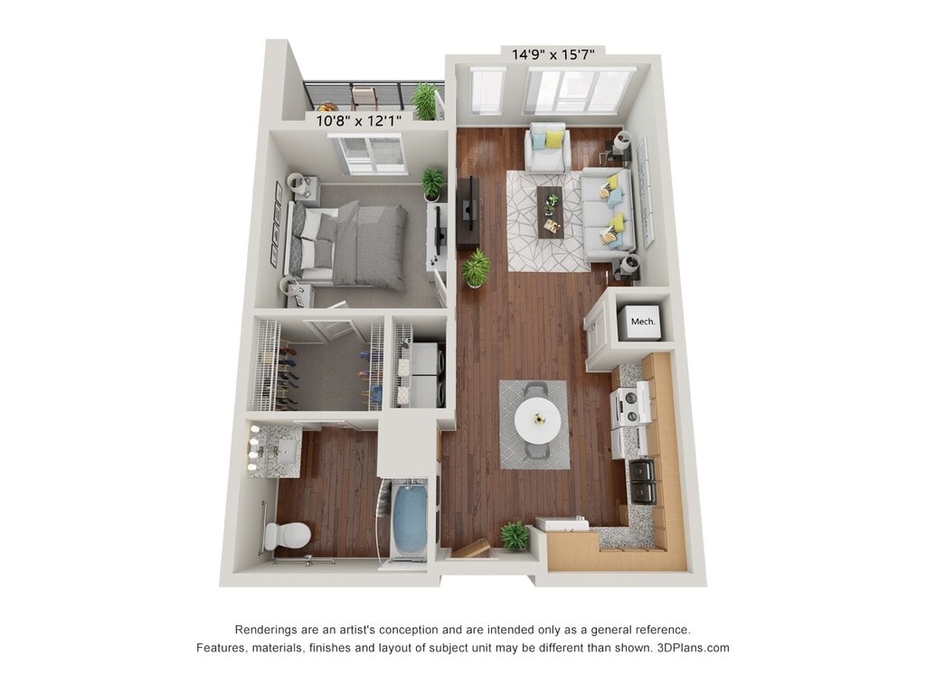 1 Dormitorio, 1 Baño, 590-605 pies²Disponible AhoraGalería del Modelo