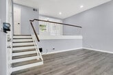 Feels less like a rental and more like a home! Welcome to this gorgeously remodeled Northbrooke townhome! The unit boasts 2 large suites, 3 baths, private 2 car garage, and is tucked deep within the complex, entering through the treelined walkways, alongside the flowing water feature. This light & bright tri-level home has an open floorplan with vaulted ceilings & clerestory windows that bring in natural light throughout the day. Stylish combinations of modern elegance from the chic chandelier in the 2 story entry; to the sleek stainless steel appliances, quartz countertops & marble subway backsplash in the kitchen; with classic backdrops of paint color throughout the home to compliment any design. Modern features include: smooth ceilings, recessed lighting, custom zebra blinds & luxury vinyl plank flooring throughout. Upgrades include: brand new dual pane windows & whole-house water filtration system. The spacious lower level living room has a corner fireplace with stone tile & wood mantle. Enjoy coffee, drinks or entertaining on the lush patio-- which sits above the green space path & shaded by surrounding trees. The upper living-dining room & kitchen level has a built in coffee/bar with sink & additional built-ins in the dining area offer abundant storage options. This flex space level is large enough to have an extra sitting area, which makes it great for entertaining. The huge primary suite has a treetop view, accent wall, desk niche, modern ceiling fan/light, an extra large closet & a secondary closet. The spa-inspired primary ensuite features dual vanities, glass enclosed rainfall shower & handheld fixtures, high end tile finishes with corner bench seat, & brushed nickel hardware. The guest suite has large closet & a full size ensuite. This secondary bath features classic subway tile surround, waterfall & handheld fixtures, modern vanity & lighting with brushed nickel hardware. Enjoy resort-style amenities, including a sparkling pool, garden jacuzzi, tennis courts, meandering water features, guest parking. Located in the heart of Northridge-- easy freeway access for commuters; minutes from Porter Ranch, CSUN, Northridge Fashion Center, Porto's Bakery, Costco & MORE! Great opportunity to rent this townhome; it feels more like a home in a nice neighborhood-like community.