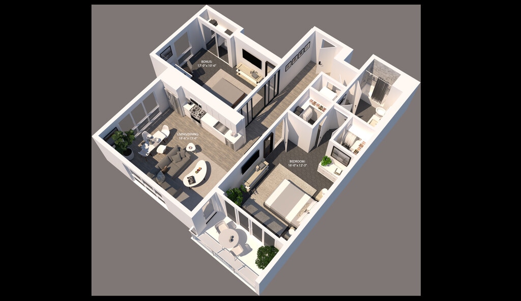 Modelo de apartamento: 1/1 Penthouse Loft$3,6951 Dormitorio, 1 Baño, 850 sq ftDisponible May 7, 2026![]()