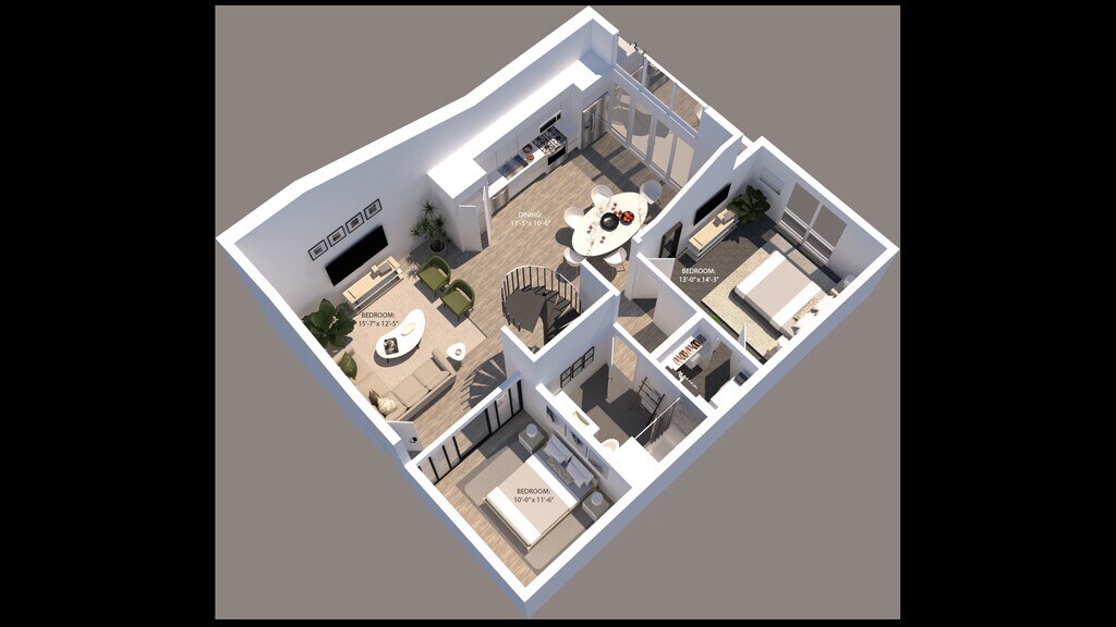 Modelo de apartamento: 1/1 Penthouse Loft$3,5951 Dormitorio, 1 Baño, 850 sq ftDisponible Ahora![]()