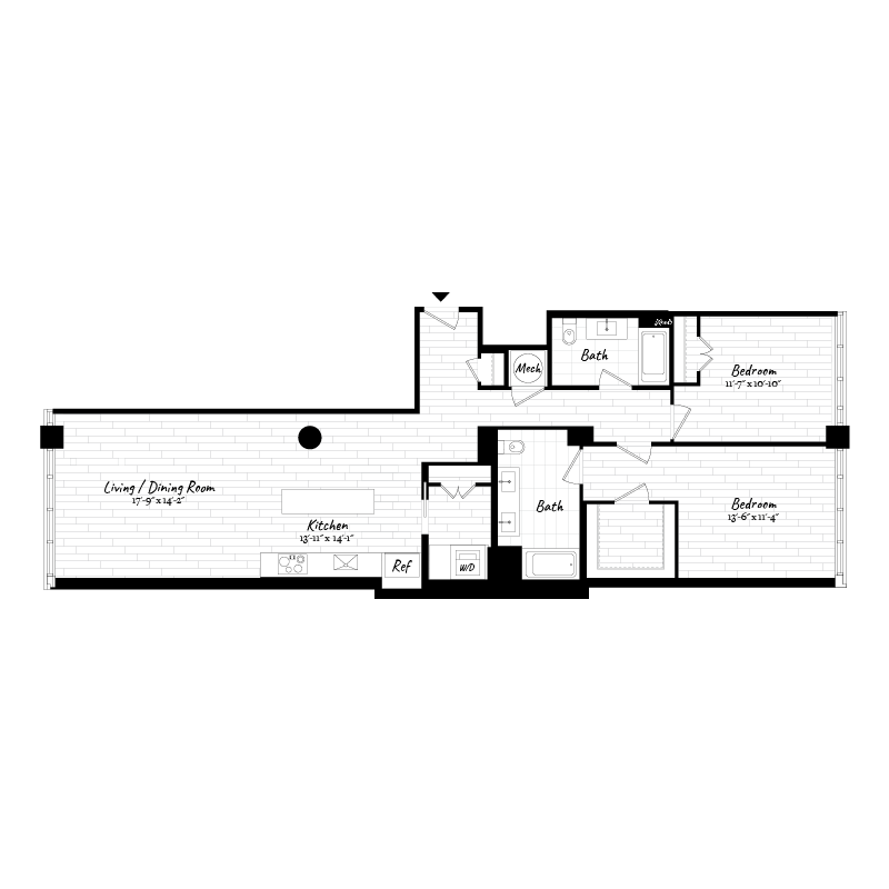 Modelo de apartamento: 1 Bedroom - 1 Bath | AD11 Dormitorio, 1 Baño, 741-744 sq ftDisponible Ahora![]()