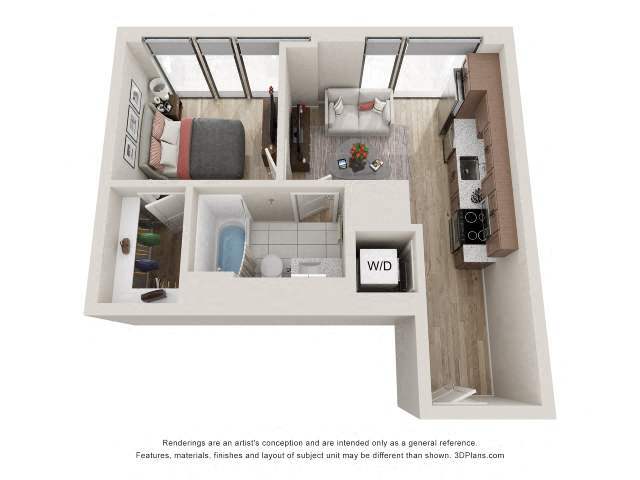 Estudio, 1 Baño, 336 pies²Disponible AhoraGalería del Modelo