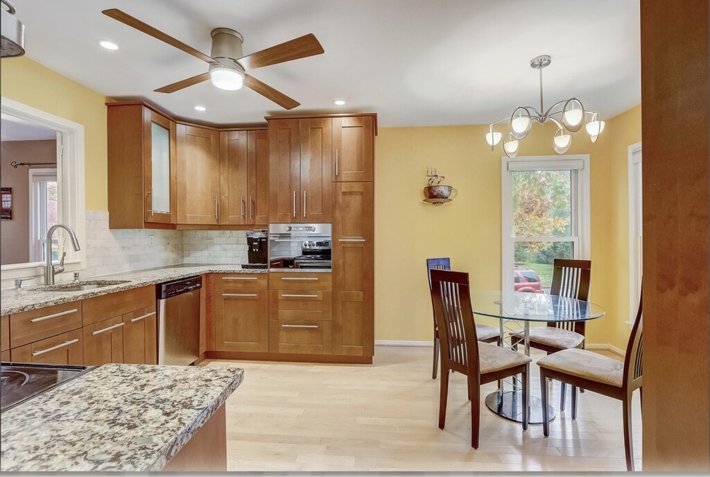 Chesterfield Community and you will arrive at 909 Winchester Ct. This beautiful 4 bedroom, 2.5 bath end unit townhome offers more than 2200 sq. ft. of living space and has been exceptionally maintained and updated along the way. As you enter the front door, you will immediately notice the genuine Maple flooring and sundrenched living space. This open floor plan home begins with the gorgeous updated gourmet kitchen complete with recessed lighting, striking custom tile backsplash, lots of cabinetry, Quartz counters, and a breakfast area. The kitchen opens to a large dining area which flows into the spacious living room with a wood-burning fireplace. French doors in the living room not only allow a picturesque view of the outside grounds but lead to a large deck perfect for relaxing and entertaining. Ascend to the new carpeted second level where you will find a large primary suite with a nook sitting area with a skylight, a gorgeous updated primary bathroom with custom tilework, double closets, and a dressing area. Two additional bedrooms, a beautifully updated hall bath, and a laundry area complete the second level. Continue up another level to find a large loft area perfect for a 4th bedroom or large office area. Need more space? No problem! The lower level offers a wonderful finished area for which the possibilities are endless. There is also a large unfinished area that provides all the storage space you will need. Parking is a breeze whether you opt to pull into your covered carport space or your additional assigned parking space Amazing 4 bedroom, 2.5 bathroom house in West Chester. Amenities included: central air, central heat, deck, dishwasher, hardwood floors, stainless steel appliance, updated kitchen, updated bathroom, storage, and washer dryer. No Utilities included. Is pet friendly.