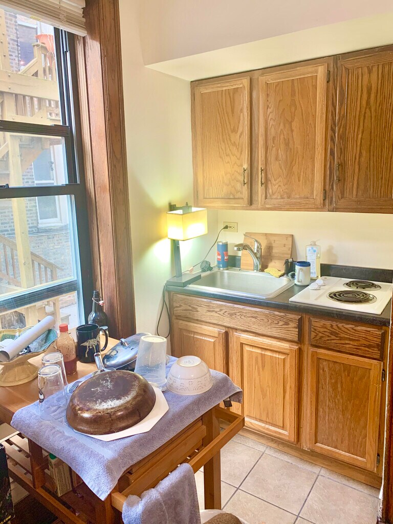 Ven a echar un vistazo a esta Bright, agradable Estudio de Wrigleyville. El estudio cuenta con pisos de madera noble, ventilador de techo y dos grandes ventanas. Cuenta con una pequeña área de cocina con gabinetes, estufa y refrigerador. Hay también un baño con bañera y ducha, tocador y botiquín de medicinas. Además, hay grandes, armarios profundos. Servicios de calefacción, gas, agua, recolección de residuos y alcantarillado incluidos en el alquiler. Lavandería dentro en el mismo piso. Patio compartido en Volver. Se admiten gatos, 1 como máximo, cargo por mascota de $200. $200 de cargo por mudanza. Sin depósito de seguridad. Administración y mantenimiento en el lugar. A pocas cuadras de distancia está la parada de la línea Red Line de Sheridan, Walgreens, Whole Foods, Planet Fitness, Jewel, Wrigley Field, el Sendero con vista al lago y a muchos bares, restaurantes y tiendas. 151 Bus está al frente de la calle. **Fecha de mudanza podría ser antes del 6/1**