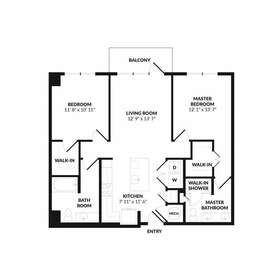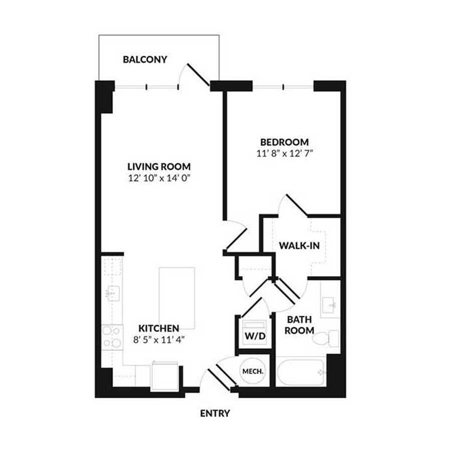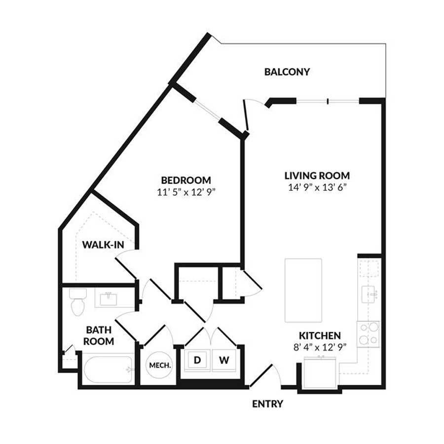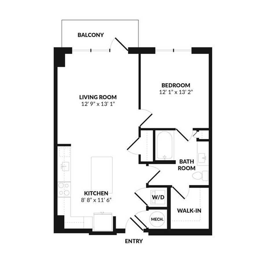 Unidad: 204 - Imagen 10 Unidad de apartamento: 205Modelo de apartamento: Hemlock - A6M$2,0861 Dormitorio, 1 Baño, 804 sq ftDisponible Ahora![]()