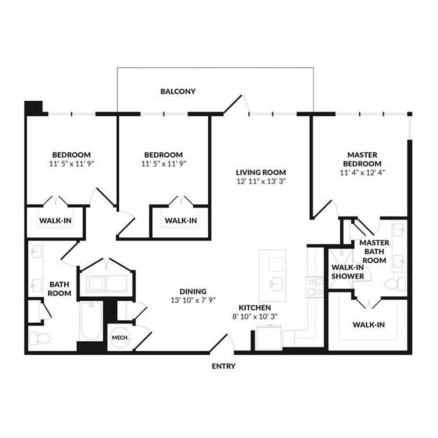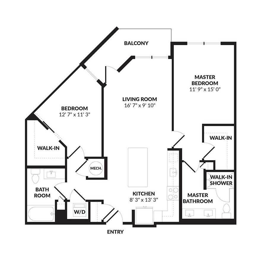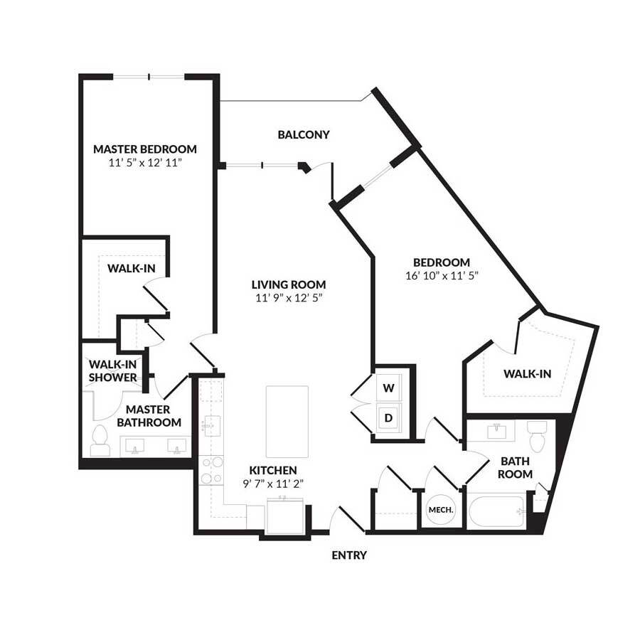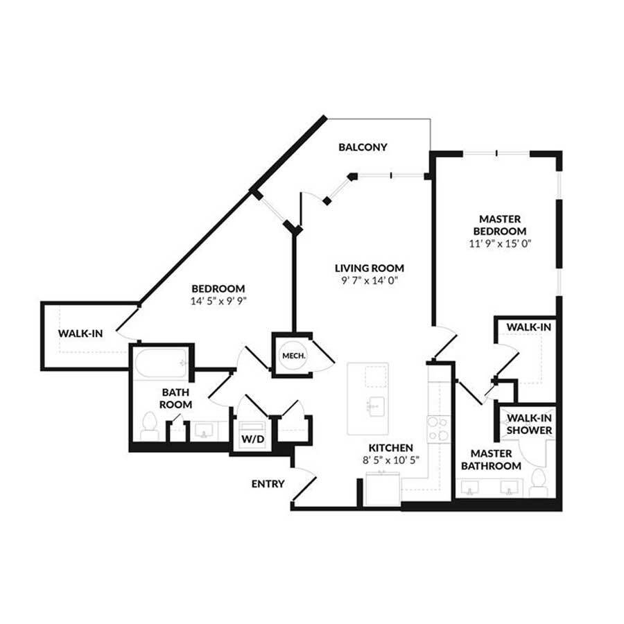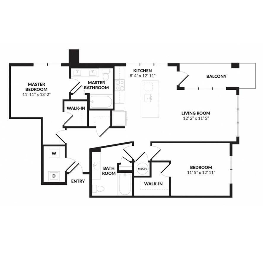 Unidad: 204 - Imagen 10 Unidad de apartamento: 205Modelo de apartamento: Hemlock - A6M$2,0861 Dormitorio, 1 Baño, 804 sq ftDisponible Ahora![]()