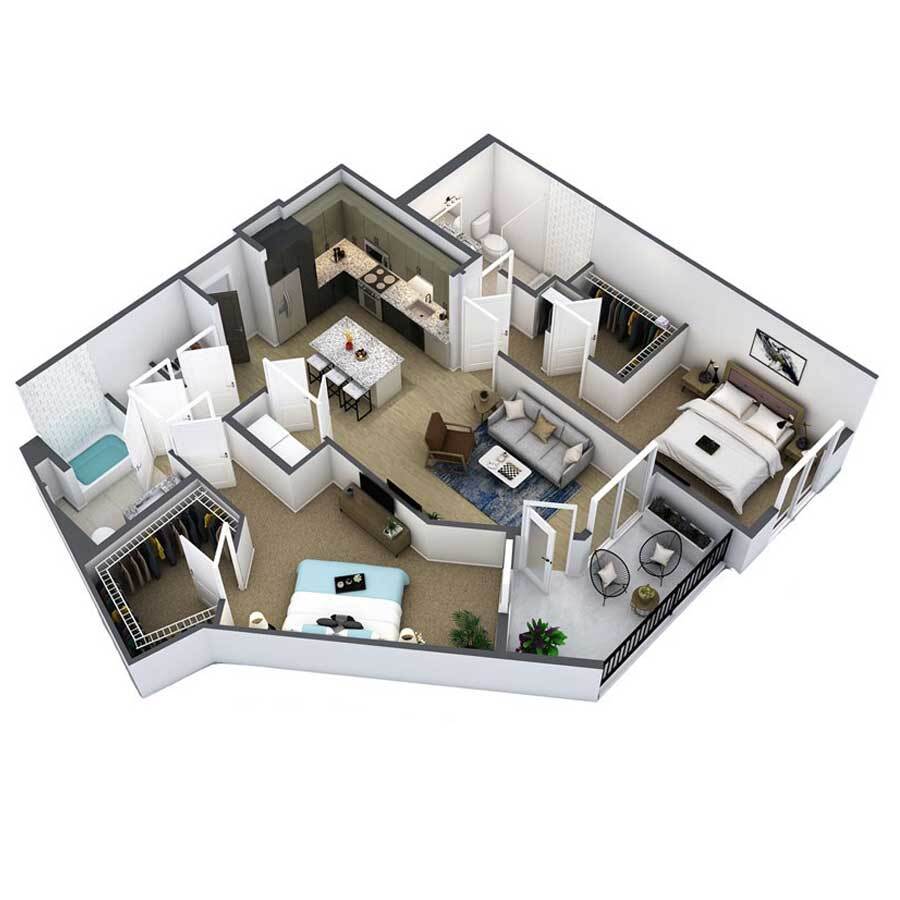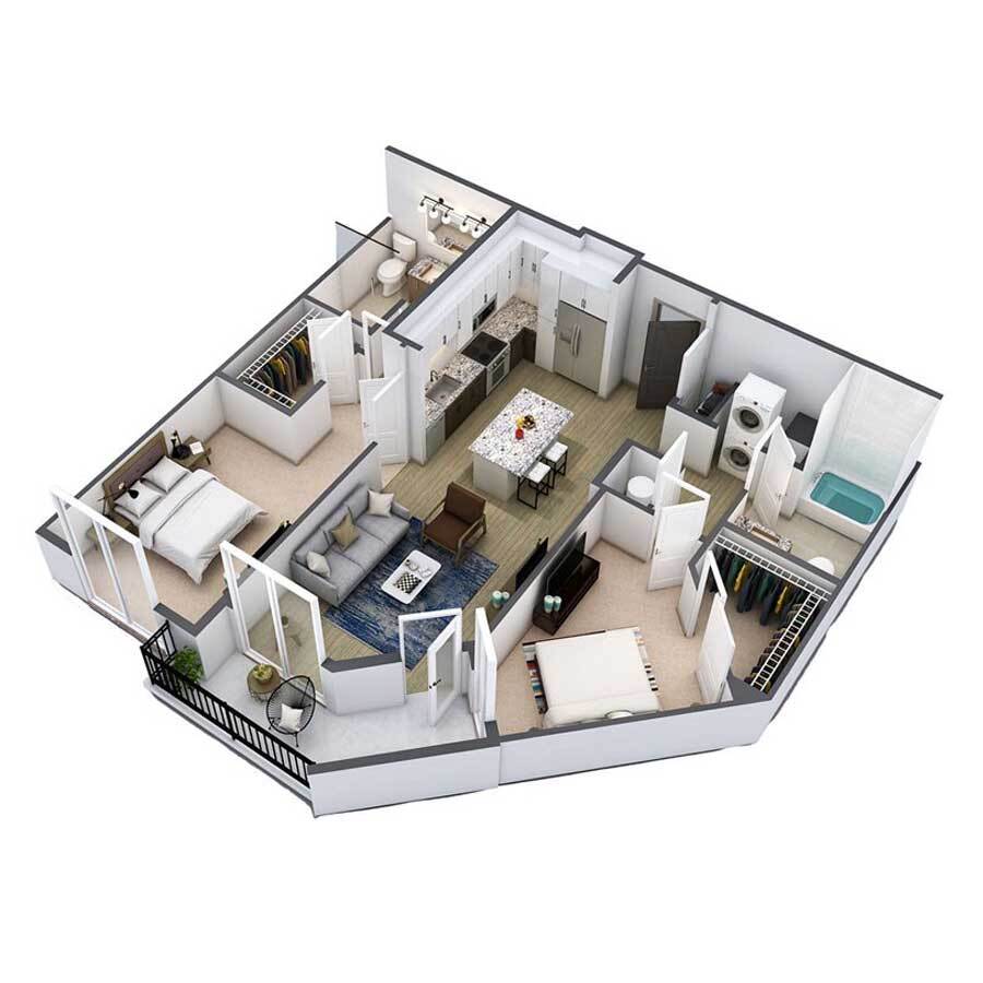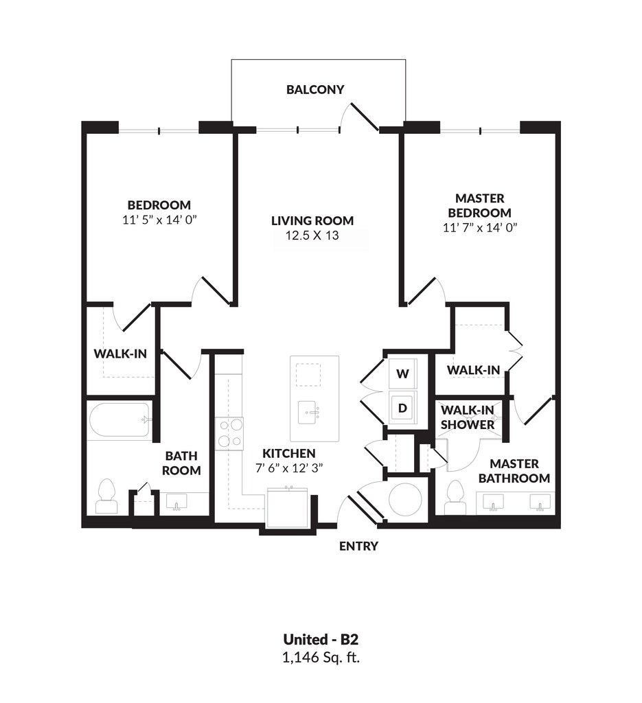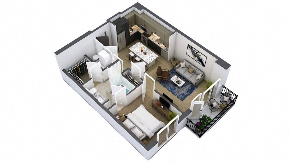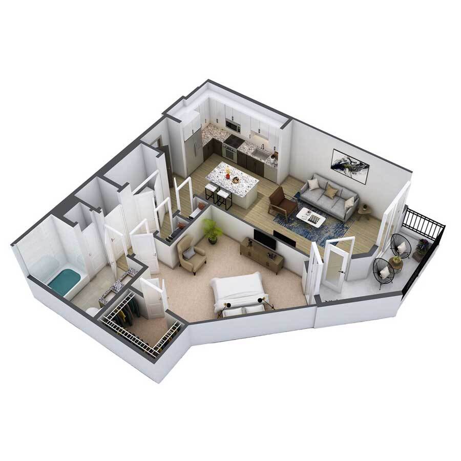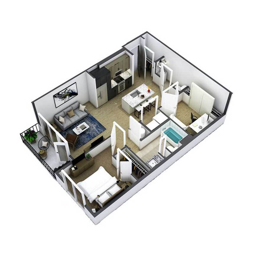 1 Dormitorio, 1 Baño, 804 pies²Disponible AhoraGalería del Modelo