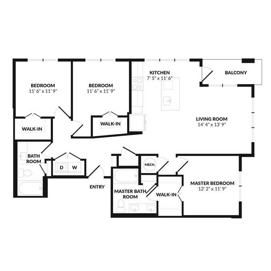 Unidad: 203 - Imagen 9 Unidad de apartamento: 204Modelo de apartamento: Hemlock - A6M$1,9161 Dormitorio, 1 Baño, 804 sq ftDisponible Ahora![]()