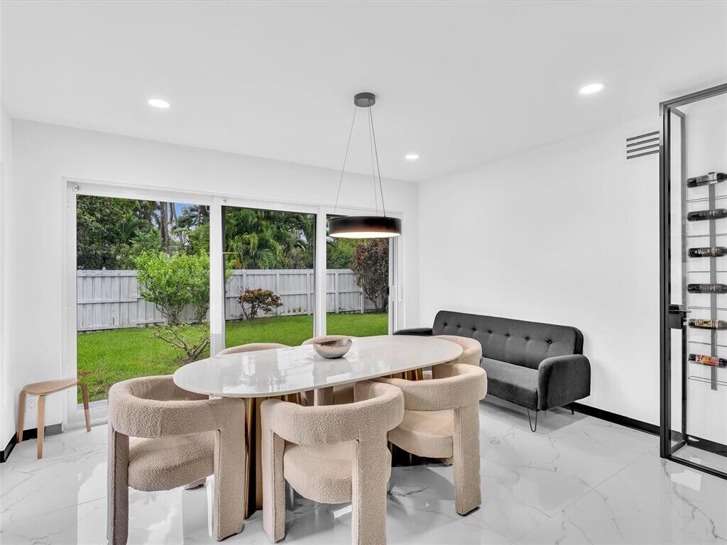 Fully renovated in 2025, this 3BR/2BA East Hollywood gem features modern design, impact windows & doors, custom glass partitions, and floor-to-ceiling glass overlooking a fenced backyard. Plumbing and electric are completely new, done with permits. Kitchen with engineered stone countertops, gas range, and stainless steel appliances. Bathrooms feature spa-style premium quality walk-in showers and LED mirrors. All bedrooms with natural wood flooring. Premium glass wine cabinet included. High-tech design in white, graphite, and natural wood. Tiled front courtyard, 1-car garage, extended driveway. Just 1.5 miles to Hollywood Beach & Broadwalk, and minutes to Downtown Hollywood, golf, parks, and shops. Listing courtesy of- The Keyes Company