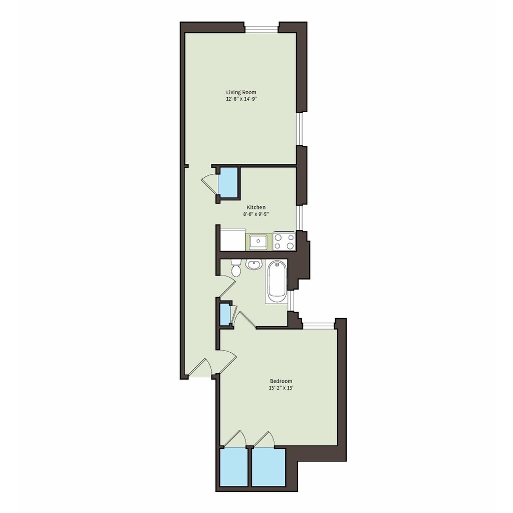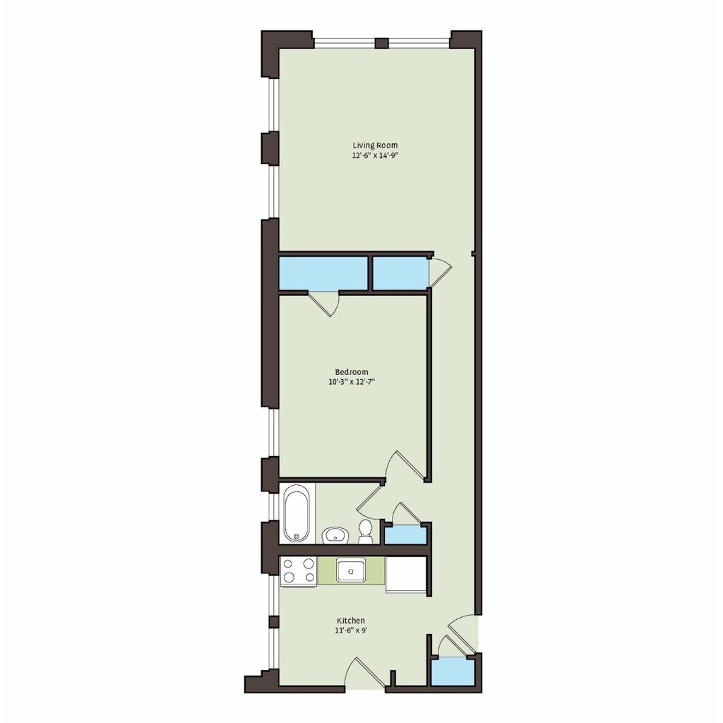 1 Dormitorio, 1 Baño, 634 pies²Galería del Modelo