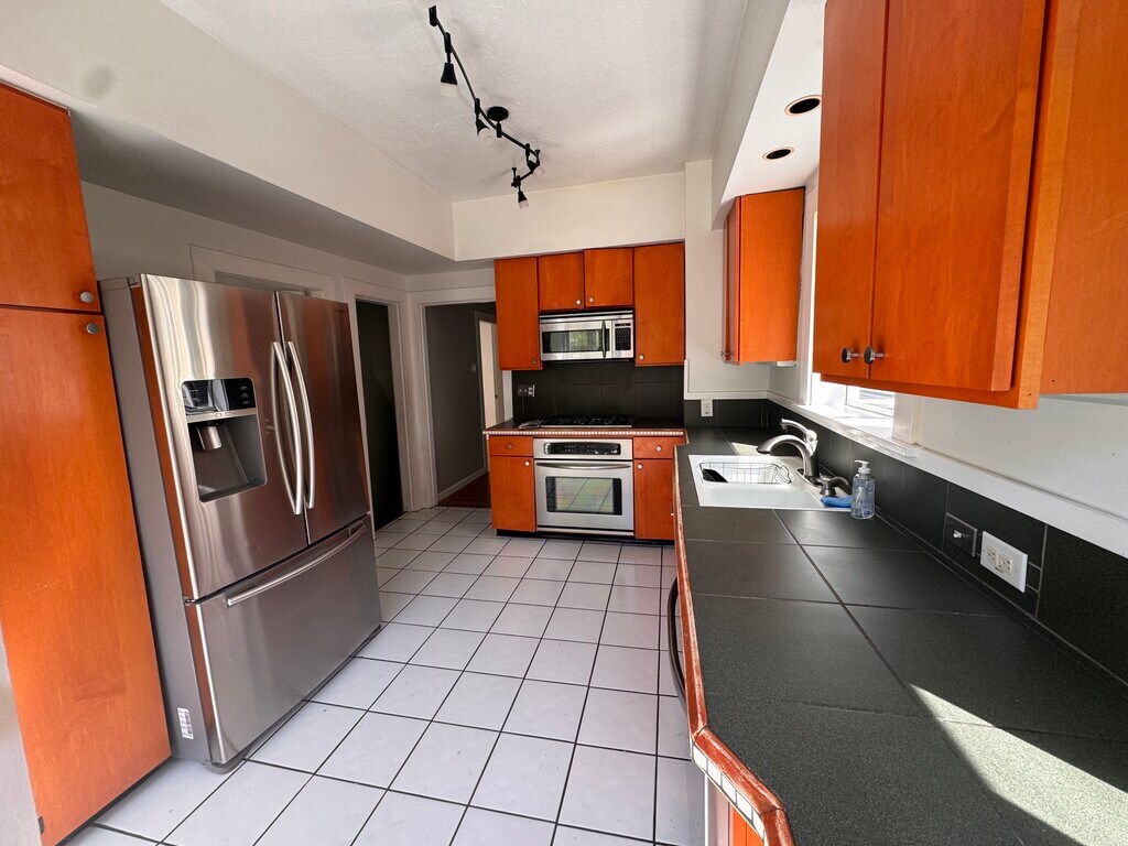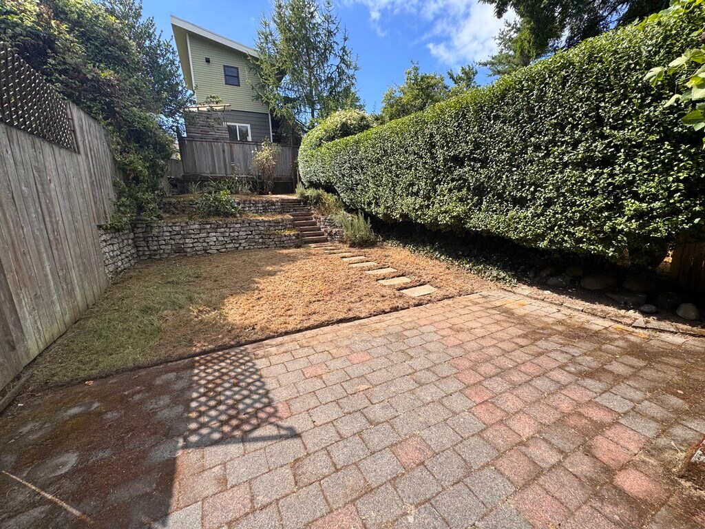 1800sqft, 3 bedrooms, 1.75 bath, large back garden. Main floor has large living+dining area, kitchen, and two bedrooms with connecting bathroom. Back patio and terraced garden are fully fenced in & with hedge, has worked well for dogs. Basement has brand new carpet, works well as a master bedroom or home theater. Basement bathroom has heated floors. Basement office can be used as bedroom. Garage is converted for storage or workshop. Has driveway, so effectively has a reserved parking space. Washer & Dryer $4200/mo with monthly yard service.
