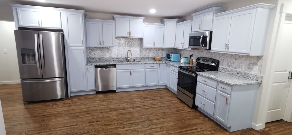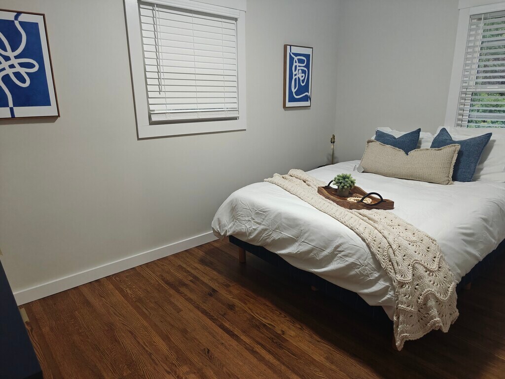 Newly renovated, all-inclusive Private Suites with private bathrooms. All rooms have Queen bed w/ mattress & protector 50" plus TV, dresser, nightstands, nightlamps, hardwood floors & keyless entry Shared spaces: Modern kitchen (2 fridges, 2 microwaves) Stylish furnished living areas Laundry w/ Maytag washer & dryer Includes: WiFi, electric, gas, water, landscaping, Ring security in common space and exterior + biweekly cleaning Single occupancy only. No pets, No smoking, Absolutely No Overnight guests, parties, drugs, firearms, or prior evictions. Clean, quiet, drama-free home.